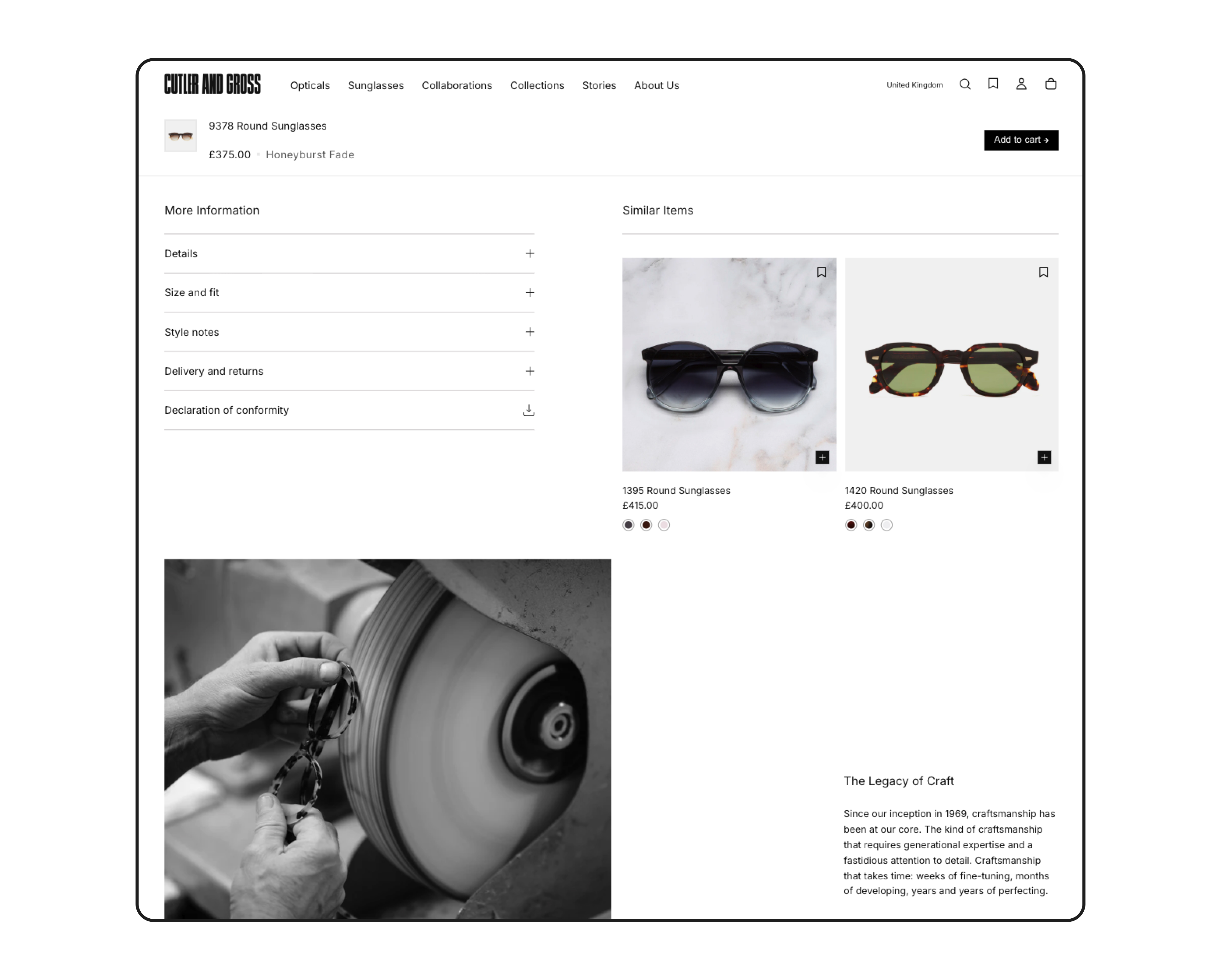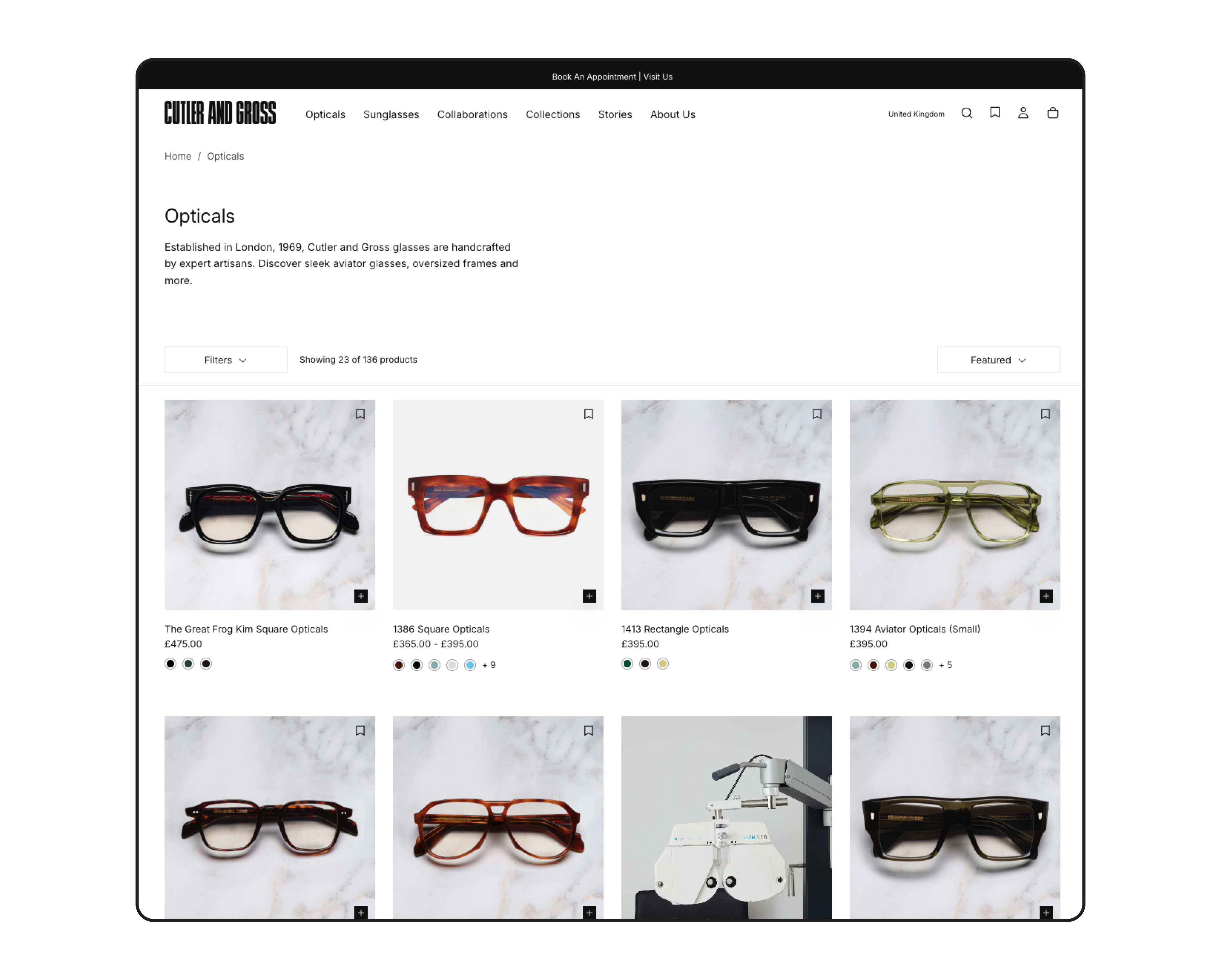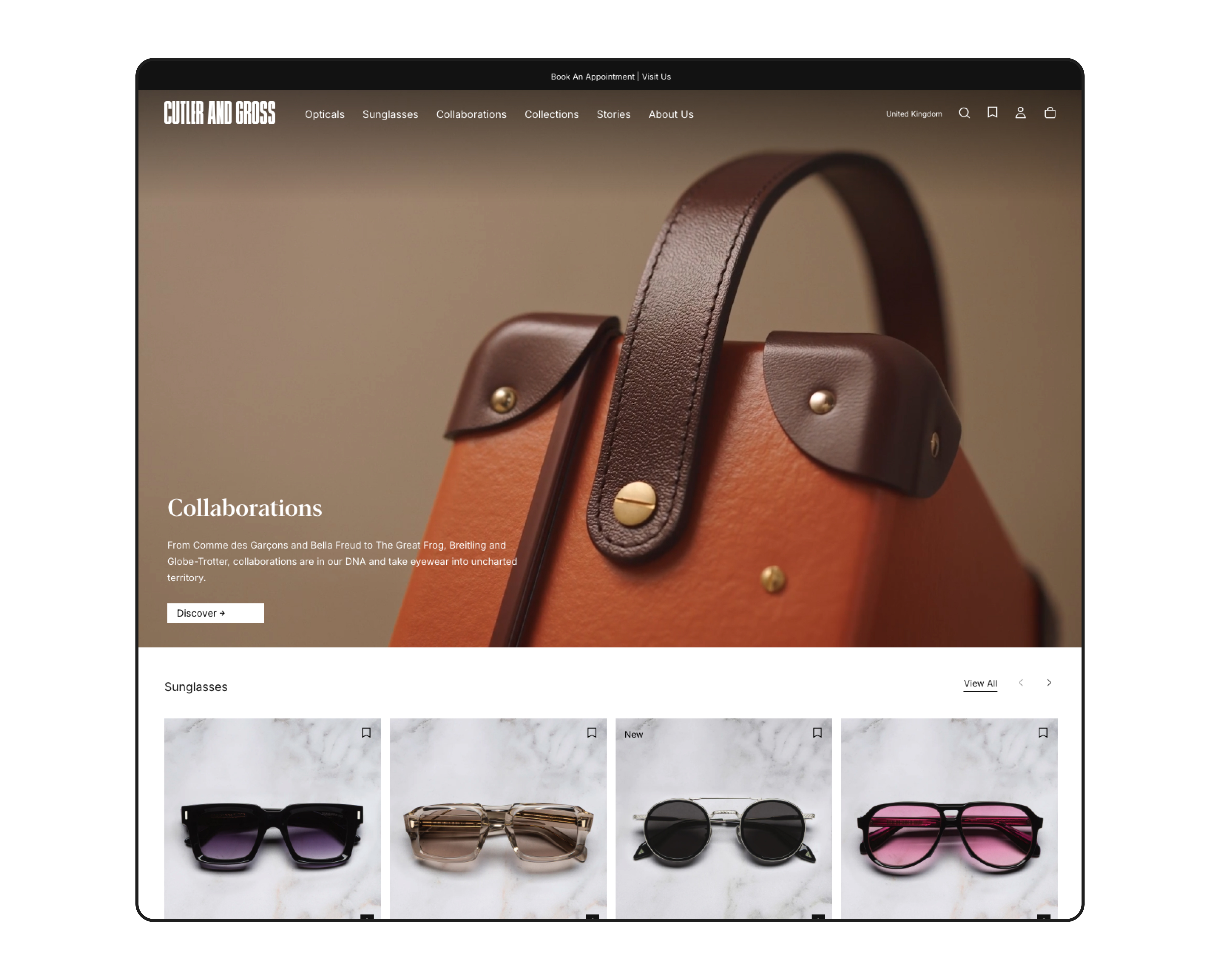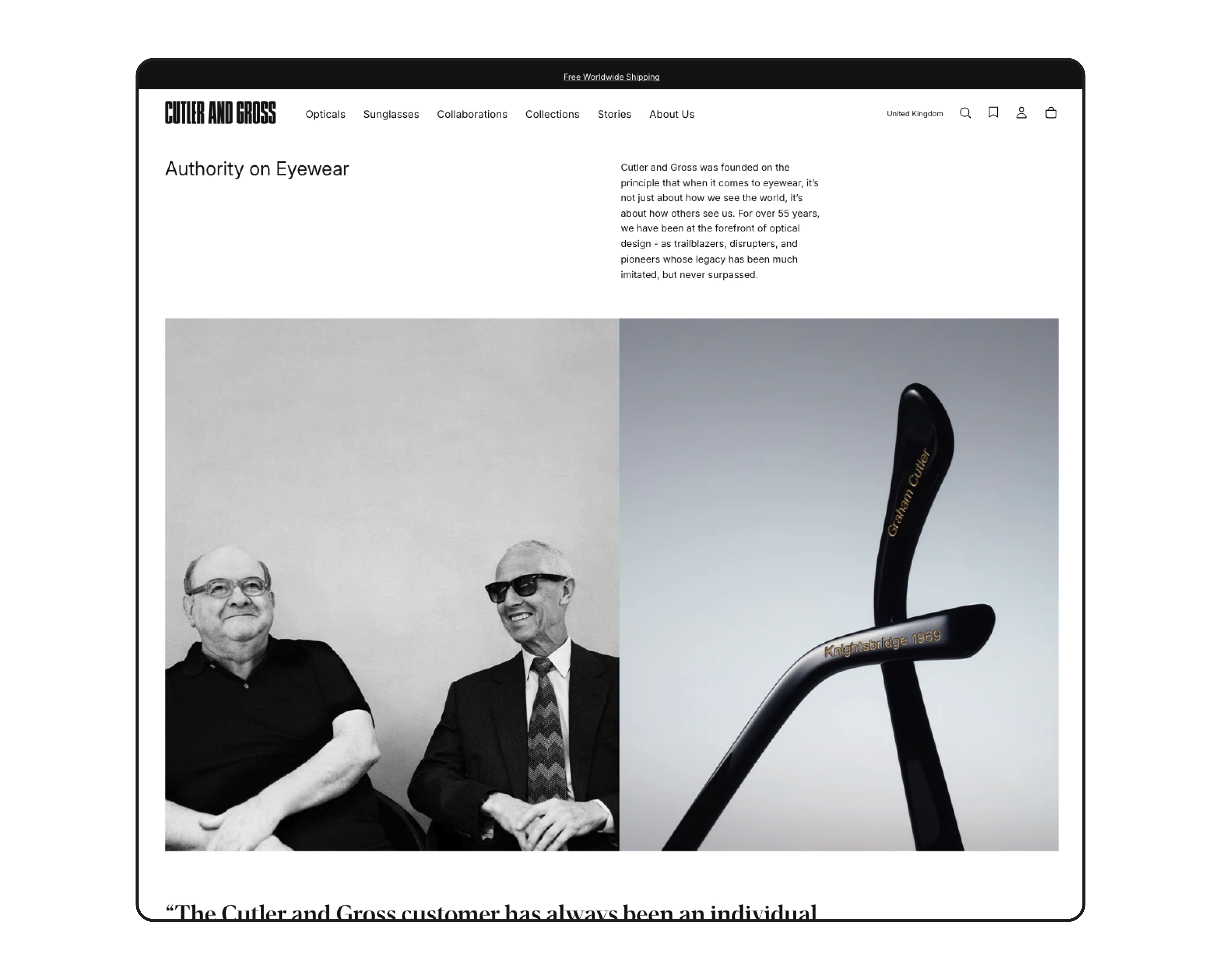 As the creative director and UX designer on this project, I guided the visual revamp of the Cutler and Gross online store — an esteemed British luxury eyewear brand known for its handcrafted, timeless designs