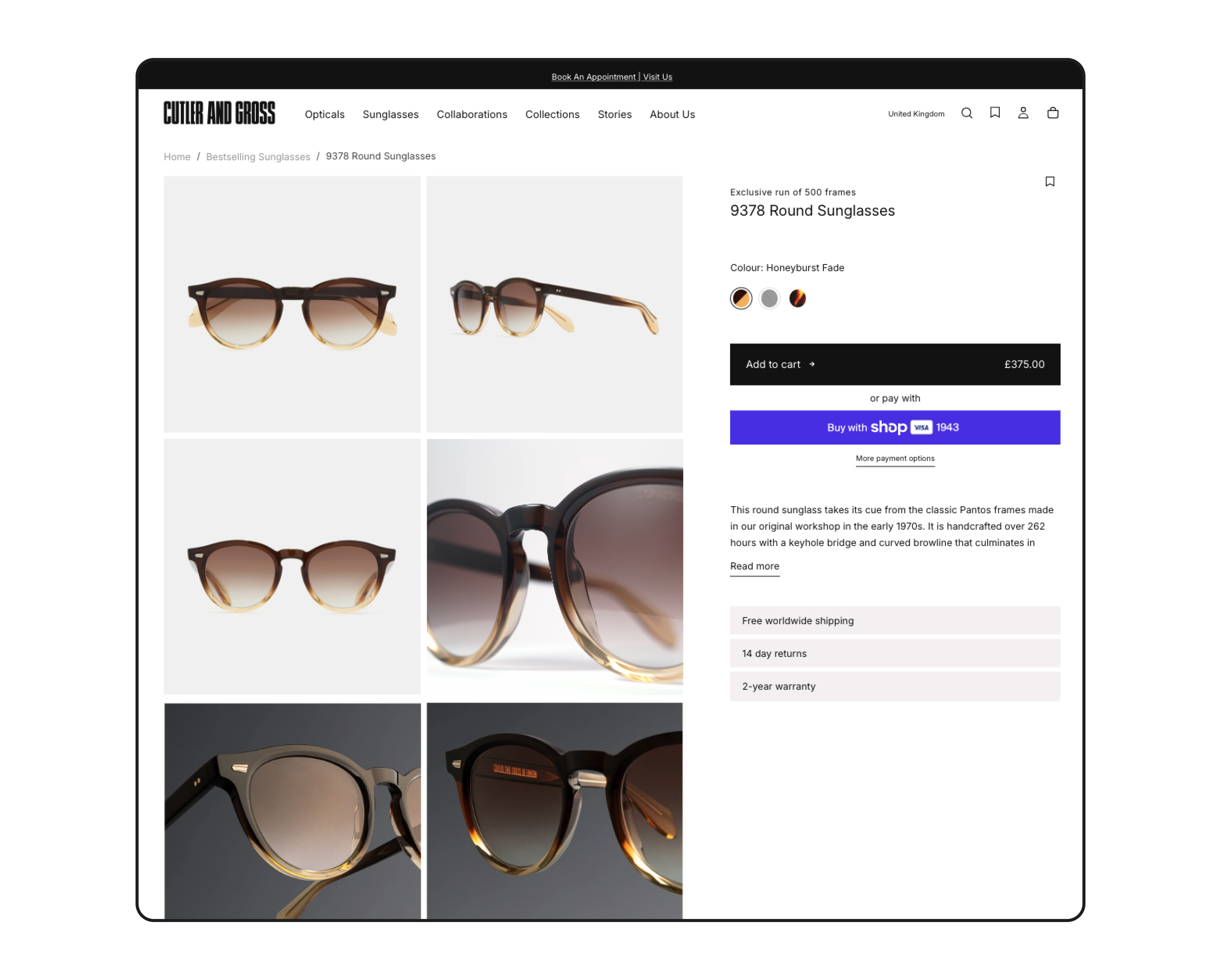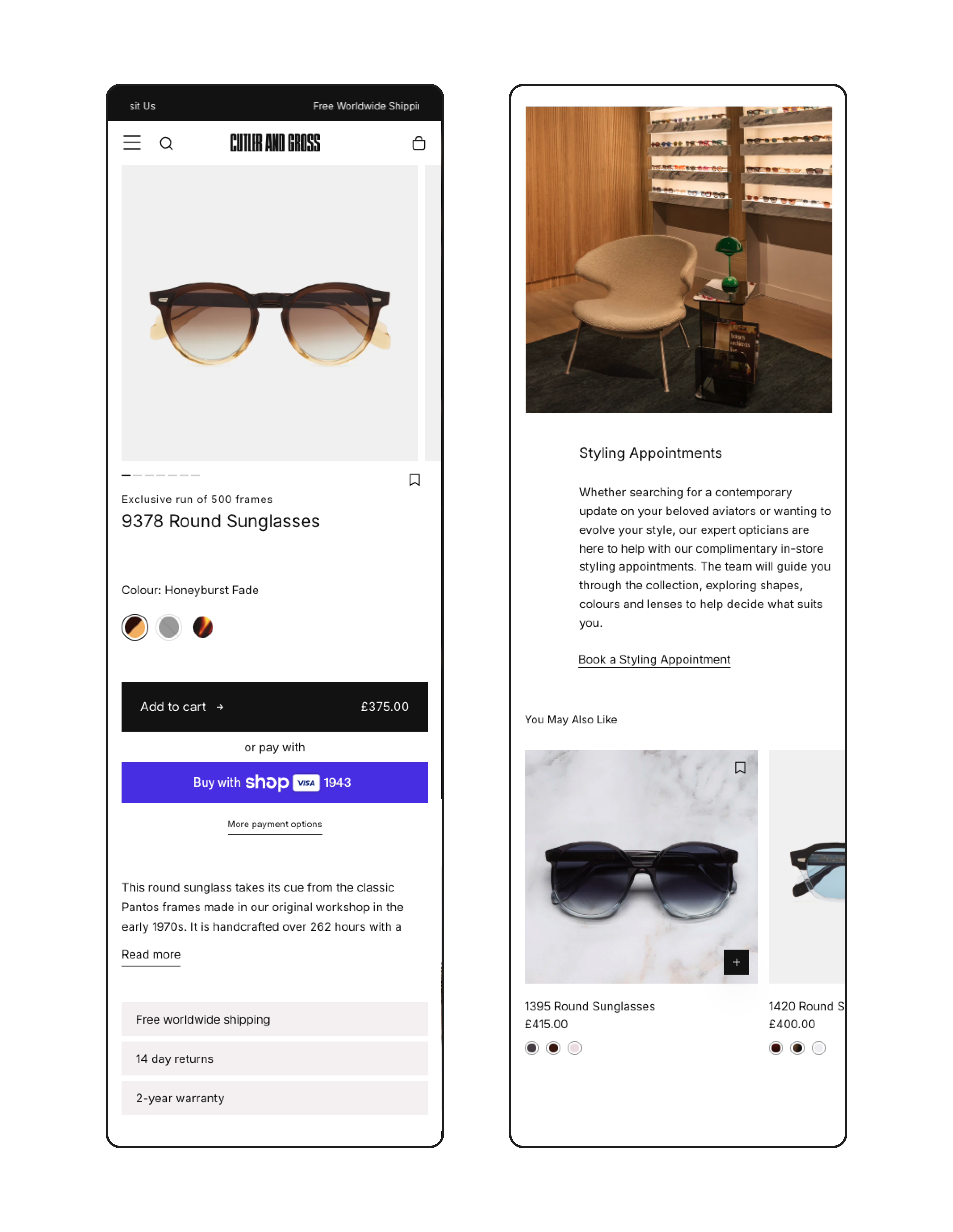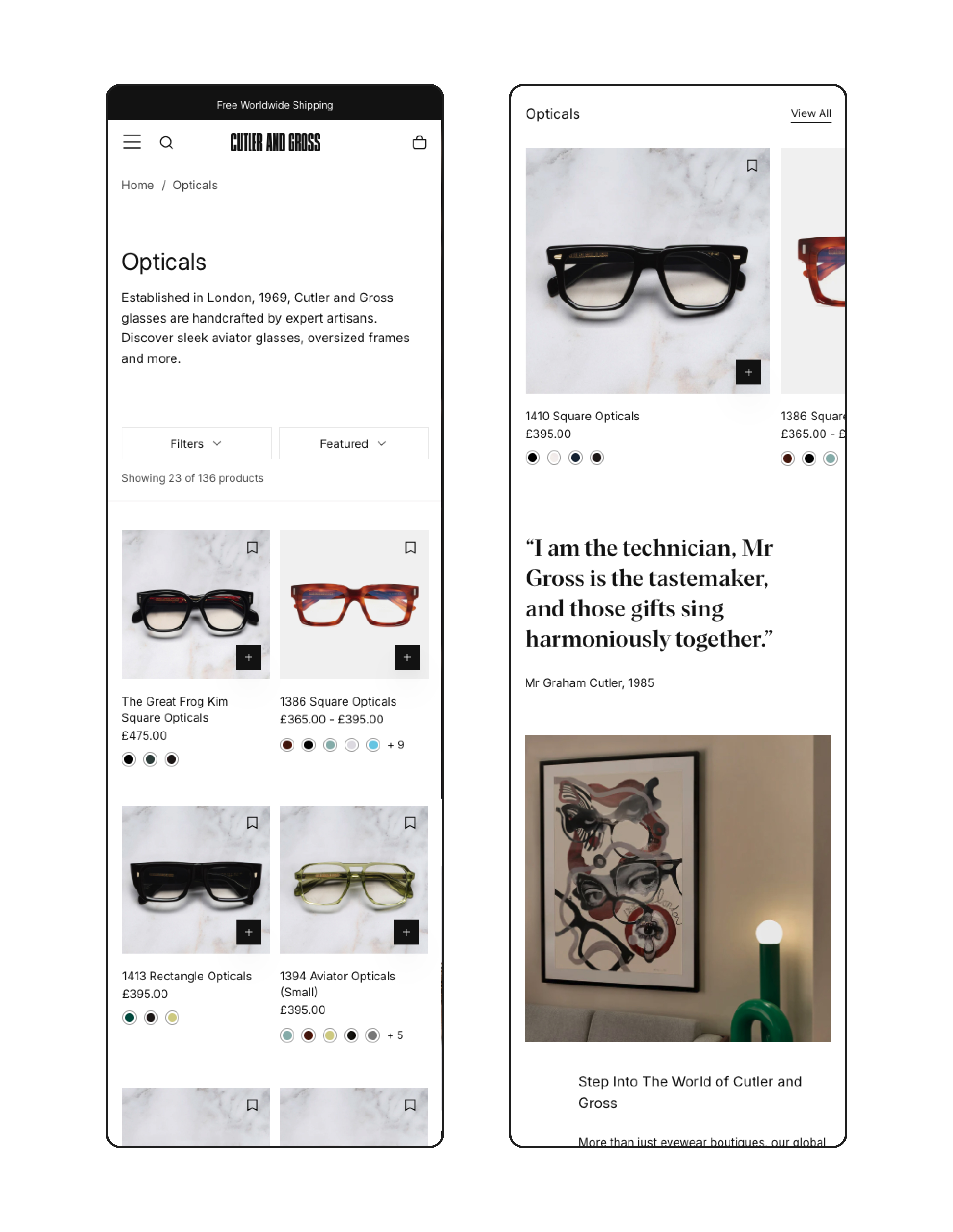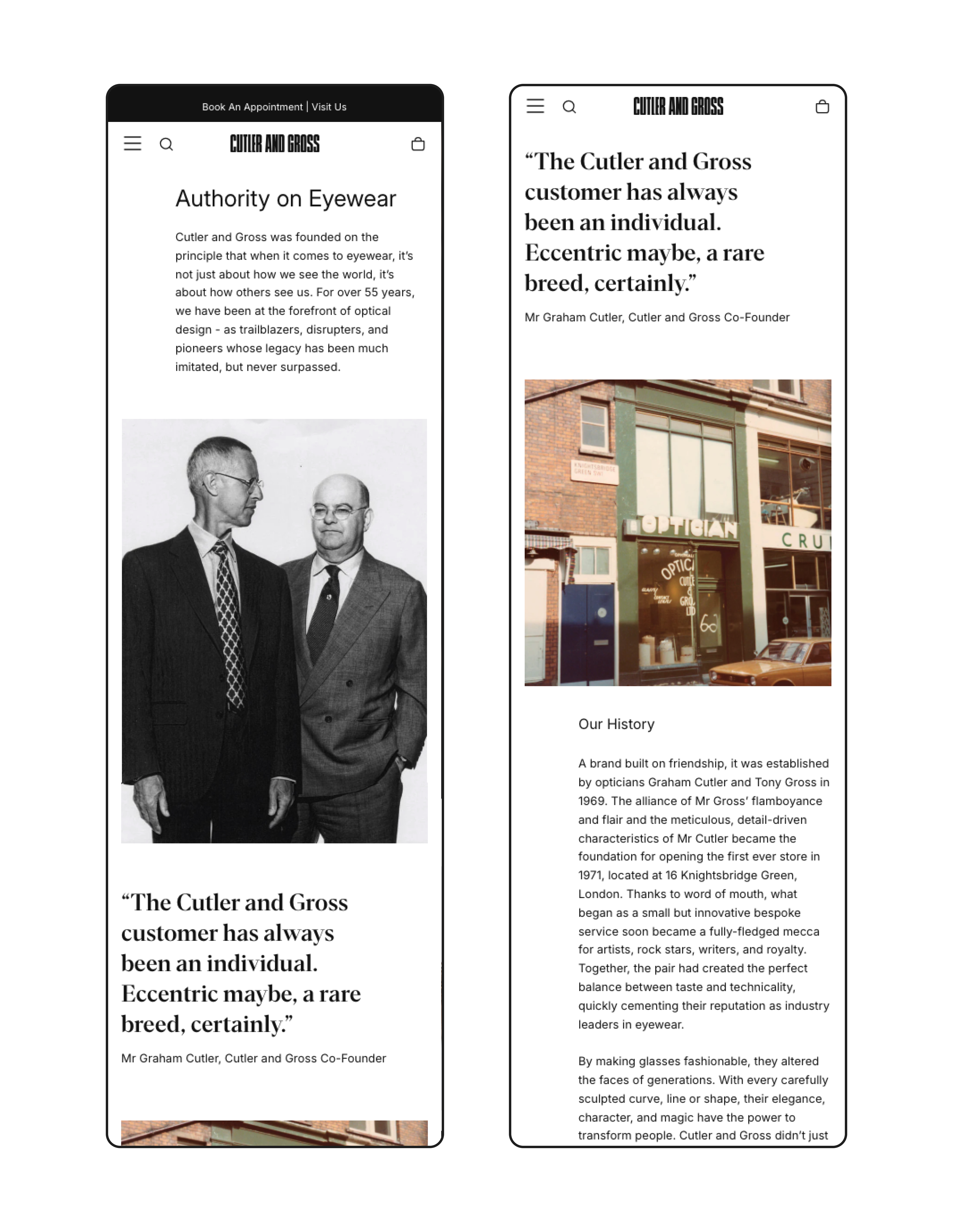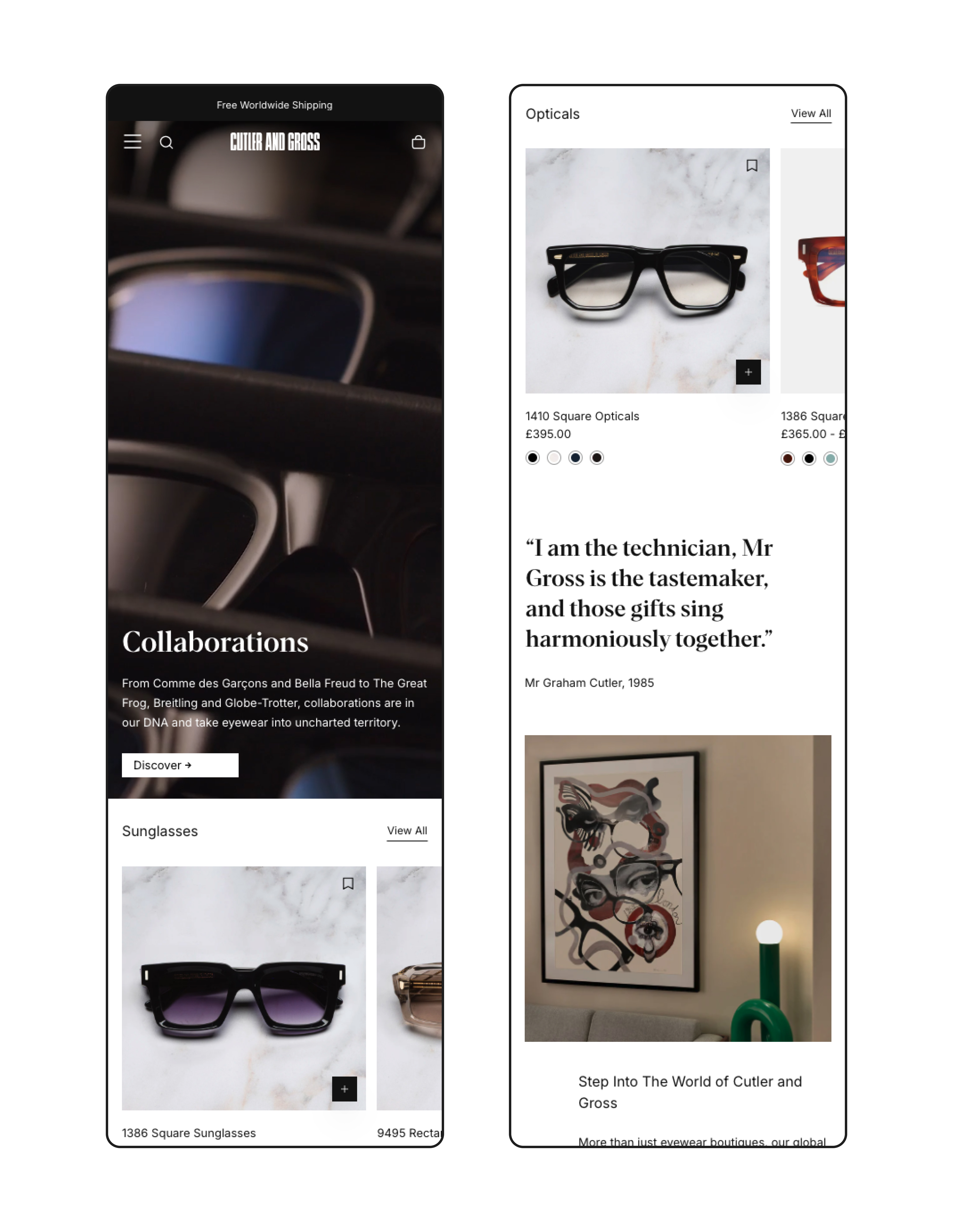 As the creative director and UX designer on this project, I guided the visual revamp of the Cutler and Gross online store — an esteemed British luxury eyewear brand known for its handcrafted, timeless designs